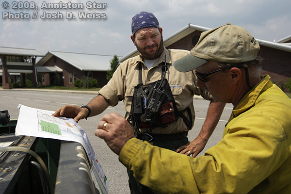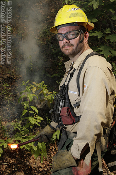 First day at The Anniston Star was yesterday. They had me shoot what was left of a controlled burn in Talladega National Forest that had happened on Saturday. Basically, show that there was fire at some point (or still is) along with a portrait of this guy who helps the project along.
