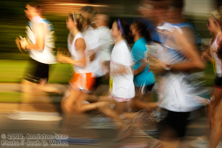 Anniston held a 5k race yesterday called The Woodstock 5k (because its starting location is on Woodstock Ave.). I tried to come up with different ways to shoot a road race cause by this point I figure everyone has seen a photo of someone running. For the record though, I do have more standard photos, of which some were used, but I liked these better so that’s why I’m posting these instead of those.