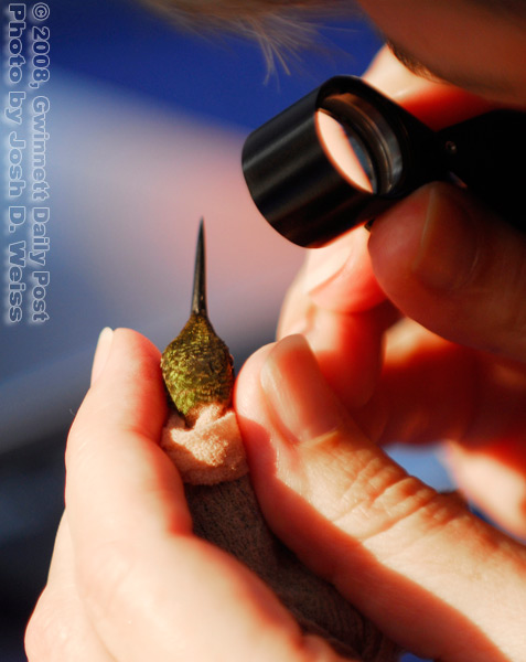 Yesterday my first assignment was to shoot this hummingbird banding demonstration that was going on at Bird Watchers near the Mall of Georgia. I tried a lot of different things, but I liked these the best.