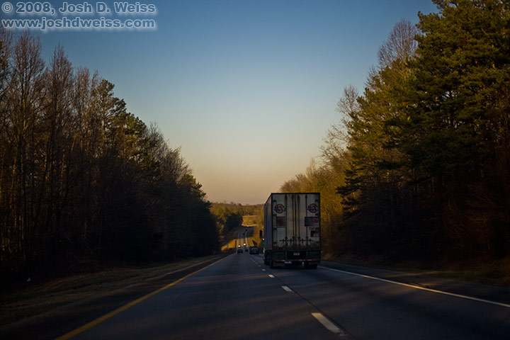 Today after work I made my way up to Charlotte, NC with photographer Jonathan Phillips to attend the 2009 Southern Short Course in News Photography.  It’s my third time attending the event and I’m pretty excited to be here again.  Here are some photos from the drive up I-85 from Atlanta.