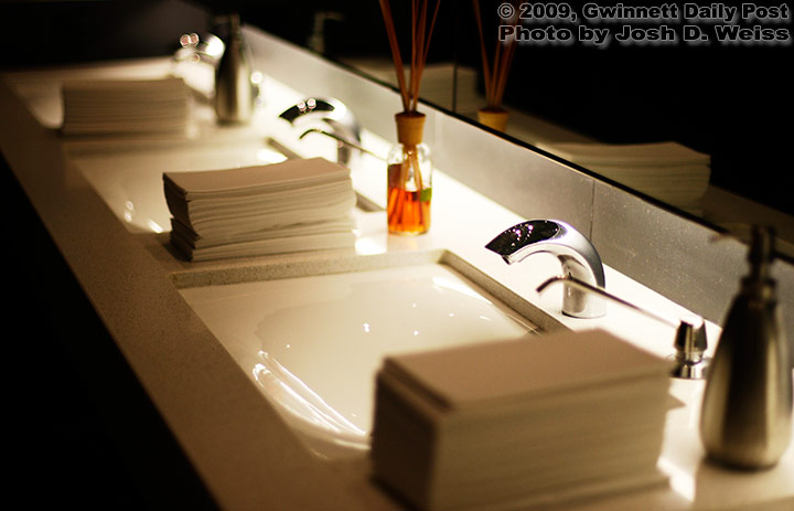 I too could not find anything remarkable about the shot of the bathroom. I studied it a few minutes only to come to the conclusion that the lhe objects in view seemed to be neatly organized. What did I miss?