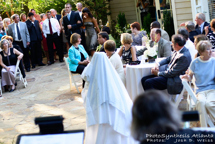 Shot my second professional wedding yesterday for PhotoSynthesis Atlanta (see the first here and an amateur shoot here). This one was at a home out in Smyrna, in the back yard. The light was nice, but most of the ceremony was in the shade of the trees surrounding the yard so, unfortunately, a lot of it was lost.