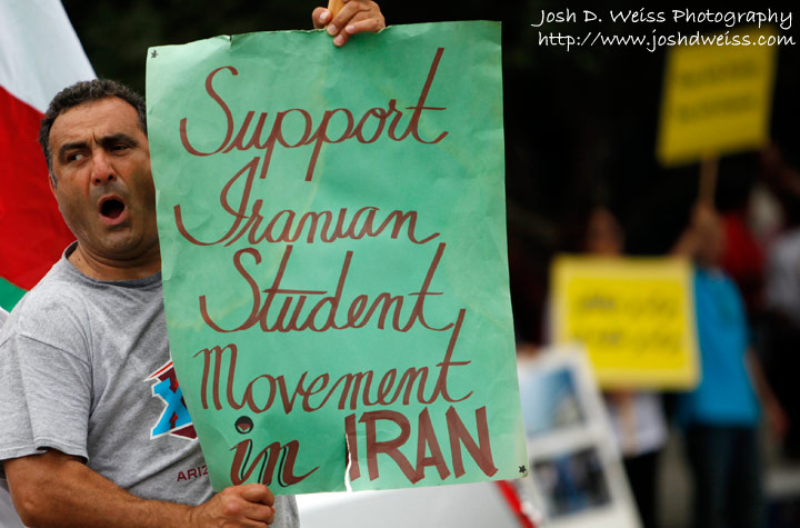 Great work. I was there yesterday and brought several friends to make a statement…I was there for the peaceful, awareness aspect of the campaign, and didn’t appreciate the “Obama-do more”/old regime flag waving/”death to Khaemini”/etc. activities but at least we reminded people that Iranians everywhere – including here in Dixie – are fed up and want democracy now and human rights for all Iranians.