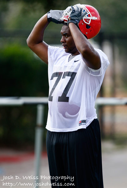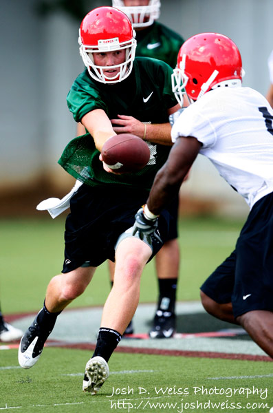 Yesterday I was sent up to Athens to shoot UGA’s first fall practice for The Telegraph in Macon. I’ve shot UGA practices before back when I was working at The Red & Black, but it was a bit different back then. The last time I went my goal was to get general practice shots, this time I had a list of about 35 people I needed to get. I wasn’t sure how much time I had so my primary goal was to get a shot of each player on my list, regardless of whether they were in action or not as I didn’t want to waste time waiting for them to actually do something.