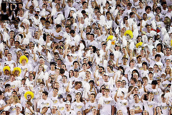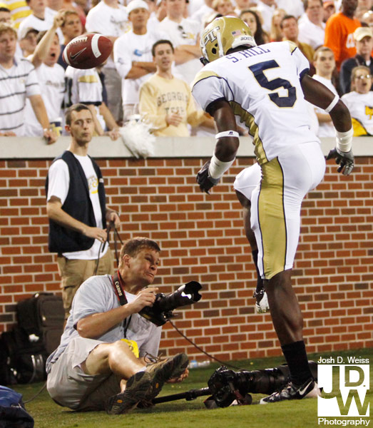 After Tech jumped out to a 21 point lead in the first quarter, it looked like they would steam roll the Tigers, but Tech only managed to score 6 points through the next three quarters and Clemson mounted a comeback. It was a really close game and judging by the faces of some of the Tech fans, I think many of them thought they would lose after giving up such a huge lead. Lucky for Tech, a Clemson player got called on holding after the Tigers successfully caught a pass that would have put them 1st and goal with just over 2 minutes left to play.