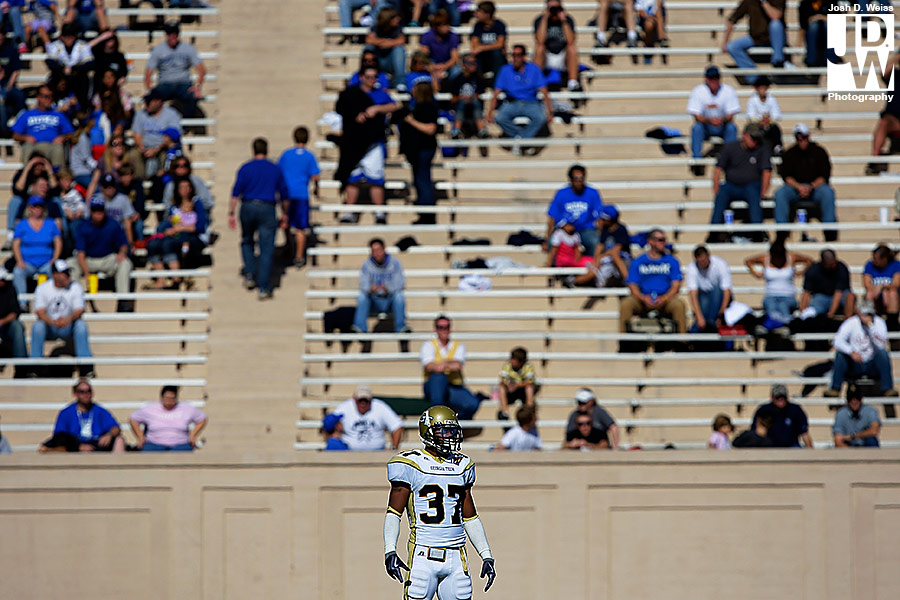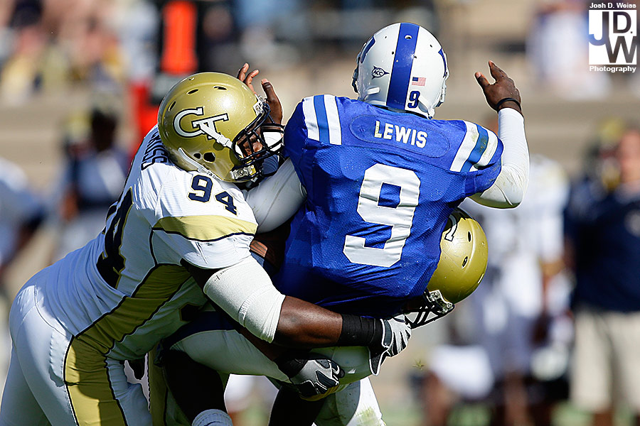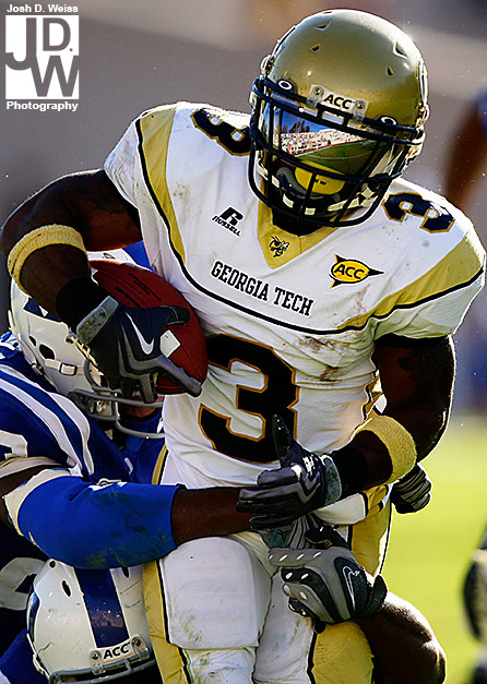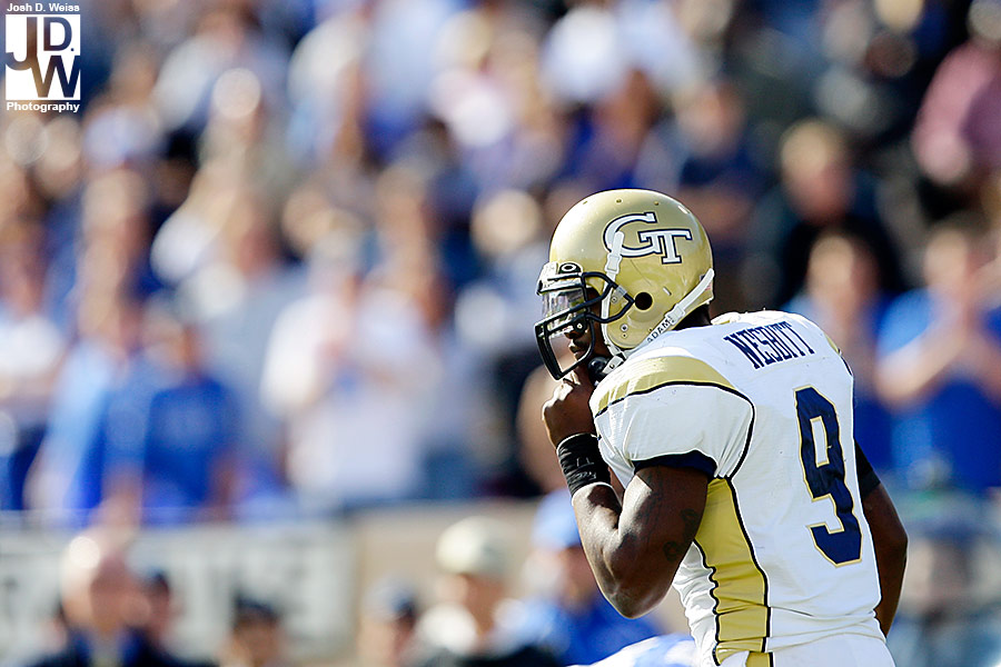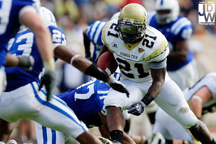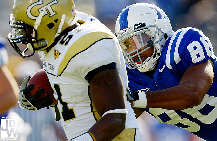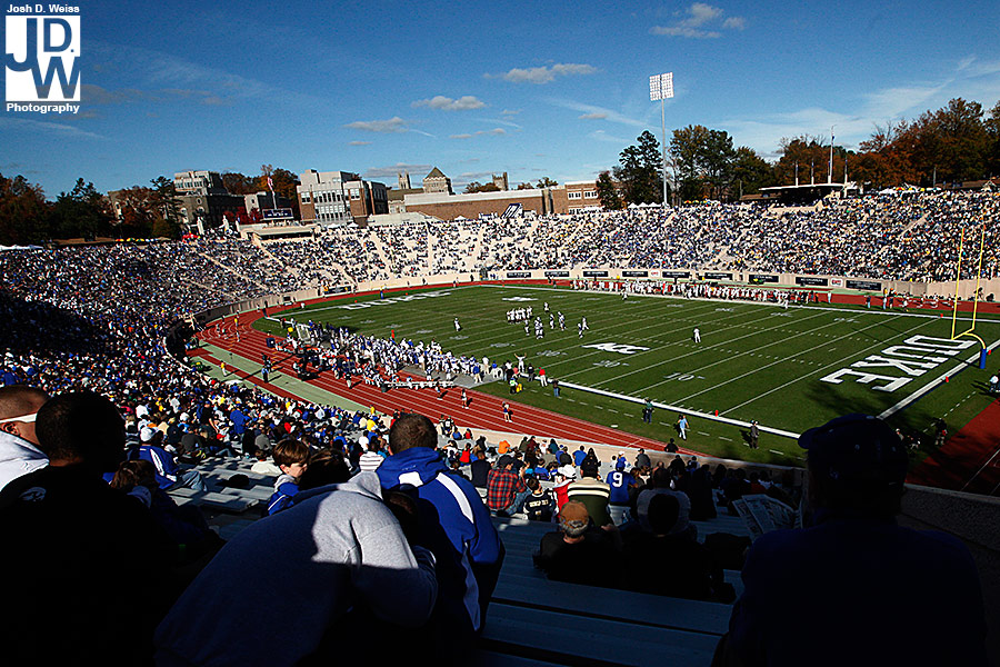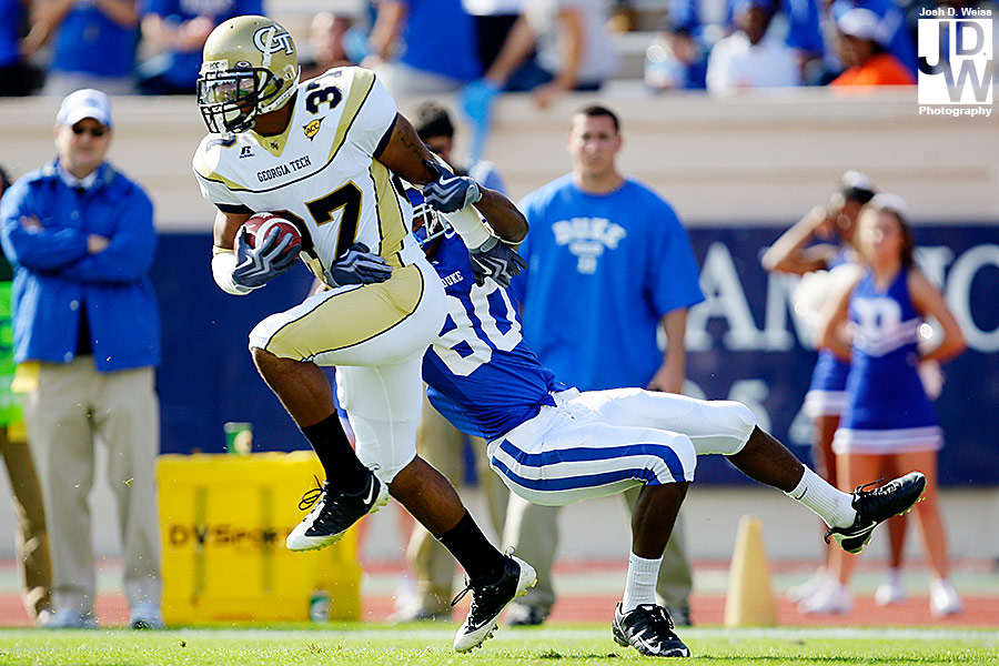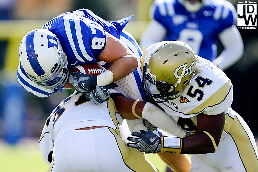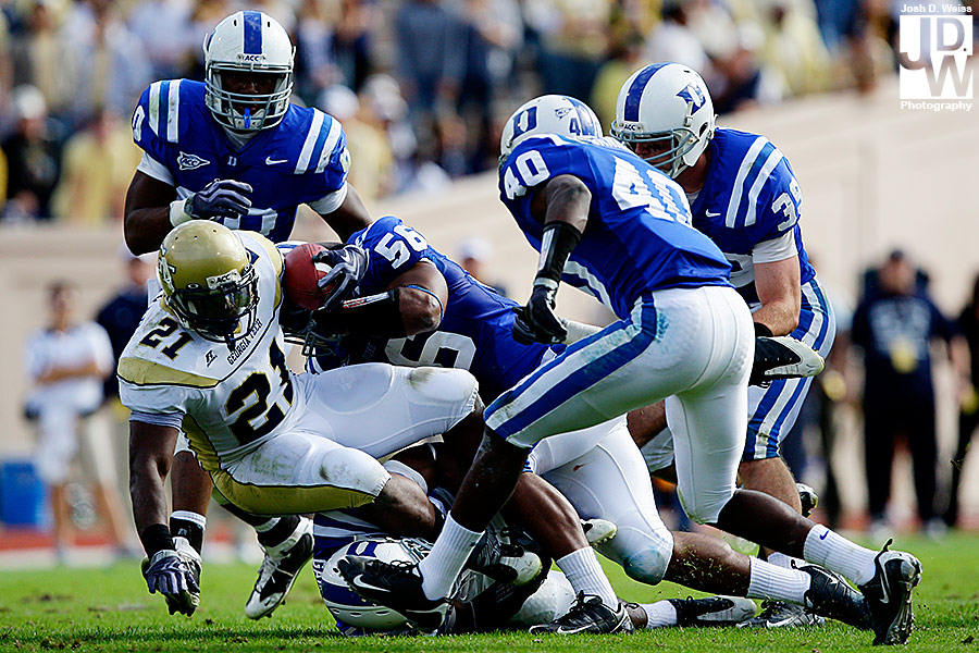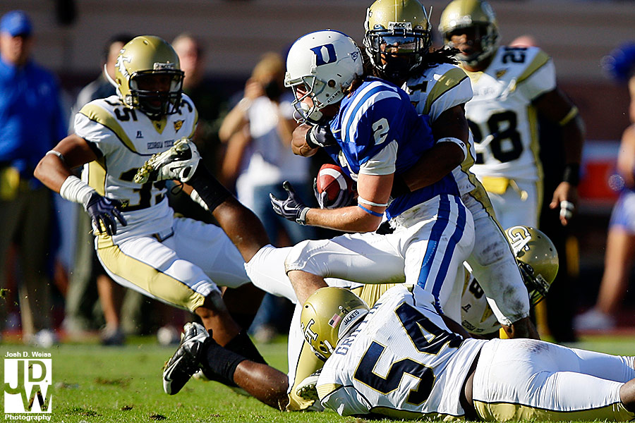 Tuesday night I got an e-mail from US Presswire asking me if I could head up to Durham for Georgia Tech’s game against Duke. Well, not remembering that I still had high school football for the AJC on Friday night, I said yes. So, Friday night around 11 p.m. I took off for North Carolina to make sure I made the noon kick off. 6 hours, a bunch of random blood on my car (I really have no idea what happened), and 30 minutes of sleep later I shot the game at Duke’s Wallace Wade Stadium.