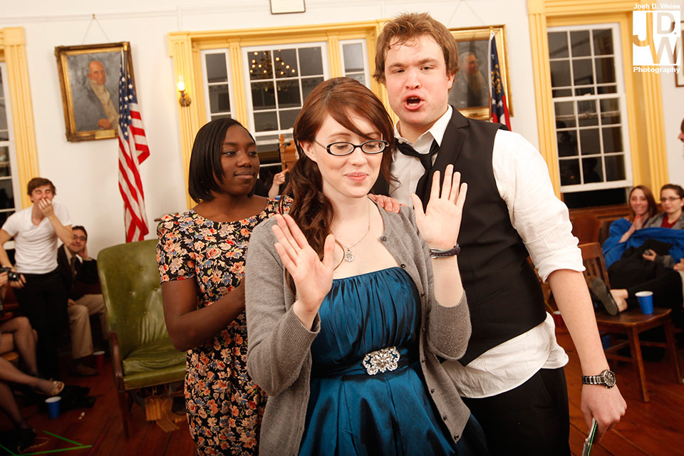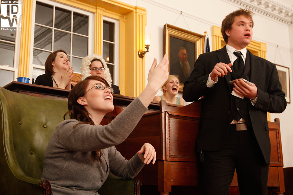 These photos are from the annual impeachment of the President that happens ever year around 2 a..m. the night of the All Night Meeting. The Sergeant-at-Arms is tasked with compiling a list of charges then prosecuting the President while the Judicial Council presides over the impeachment. The President is allowed to appoint someone for their own defense.