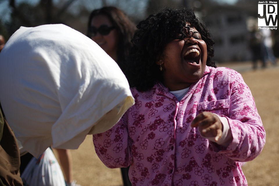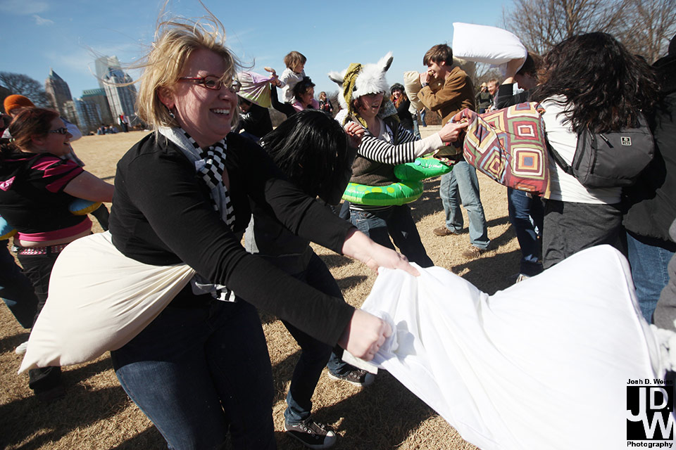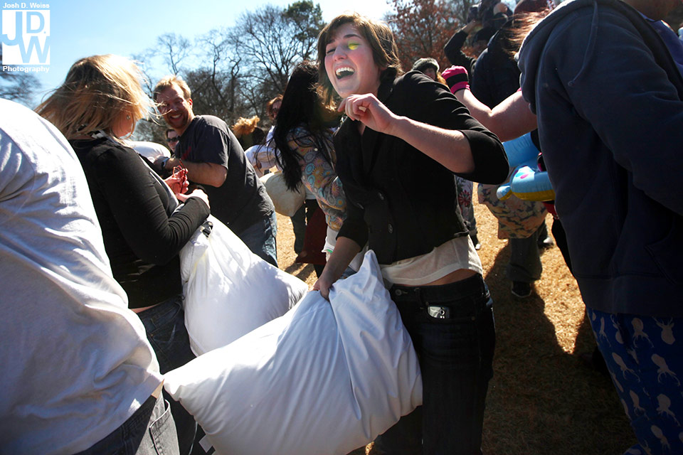A few days ago I heard that there was going to be a giant pillow fight down at Piedmont Park. Obviously, I made sure I was there to capture it. There were a lot of photographers there, but none of them seemed willing to get knee deep in the fight, well, except for me.