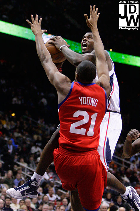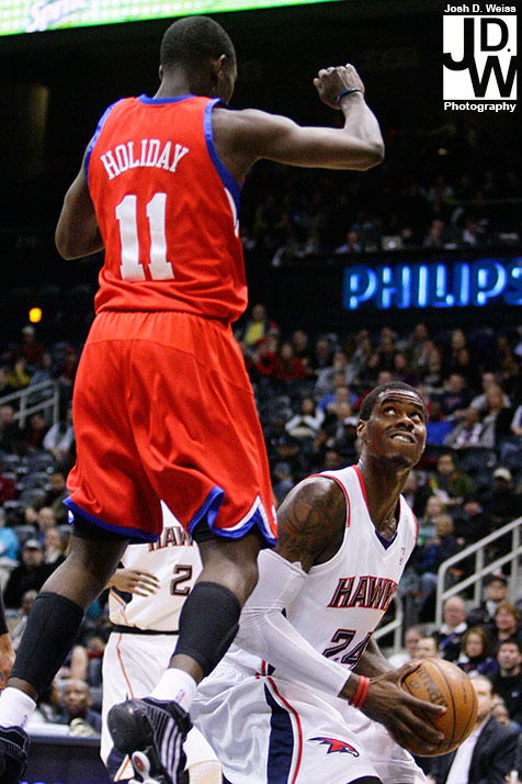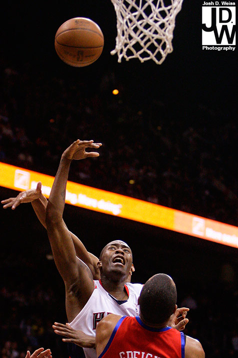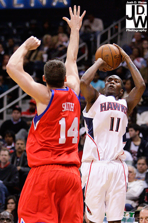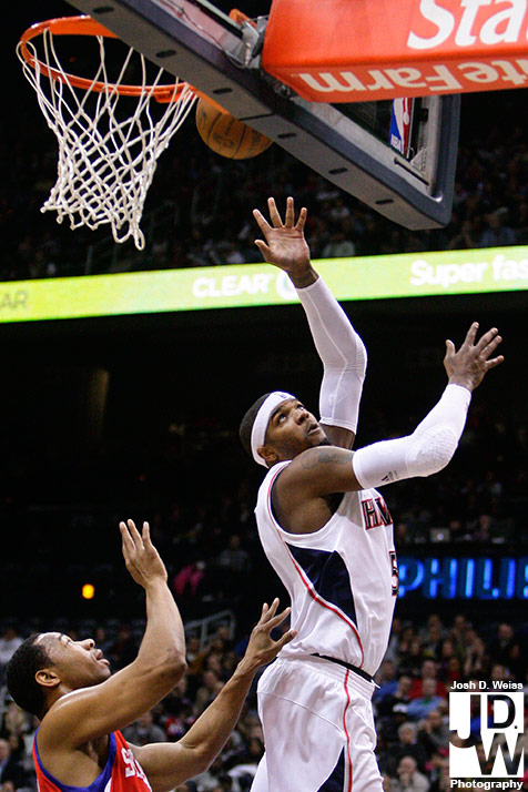Last week I shot another Hawks game for US Presswire. I was incredibly tired because I had pulled my first shift for my new part time job at CNN.com which requires me to wake up really early, then I shot some high school golf for North Springs before I even got to Philips.