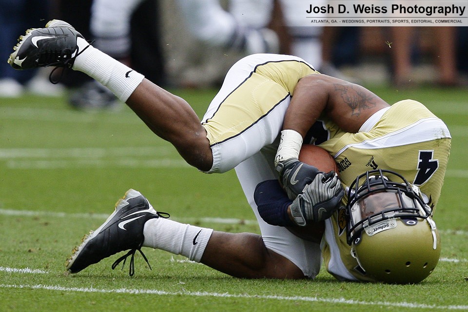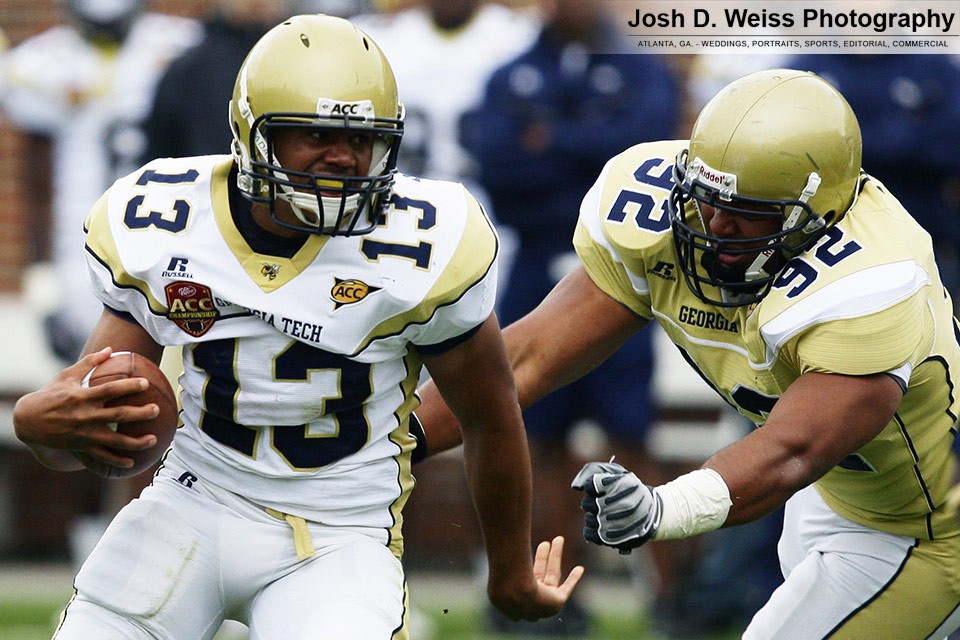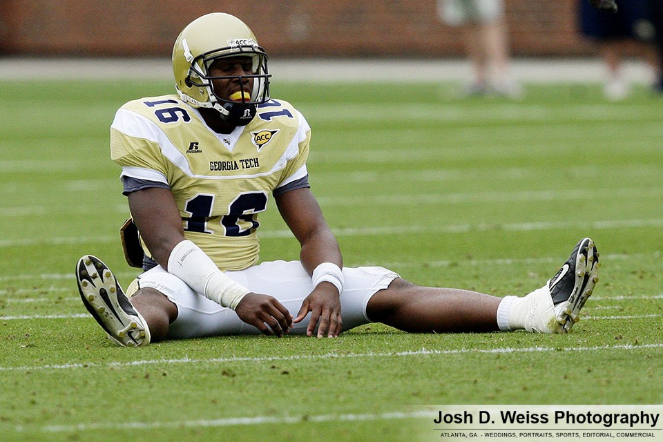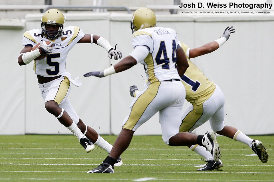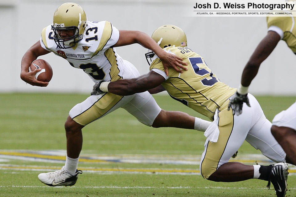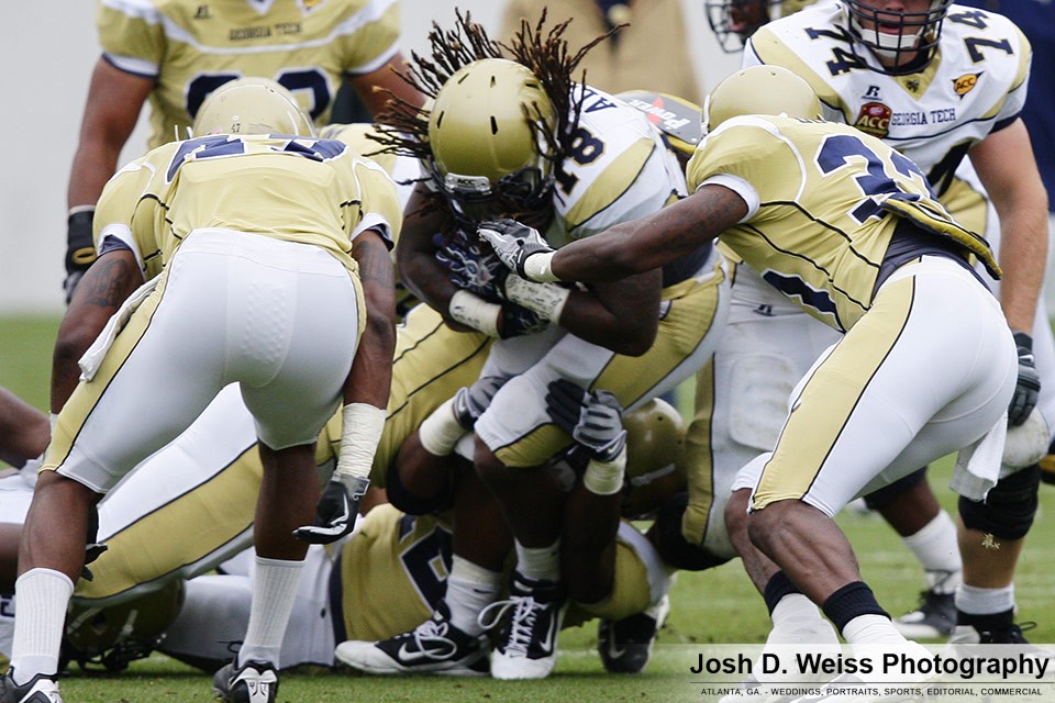 Saturday was Georgia Tech’s annual T-Day game, which marks the final practice of the spring for the football team. It is the third of three team scrimmages and the only one open to the public. It is held in Bobby Dodd Stadium. Last year was the first time I shot the game (see here).