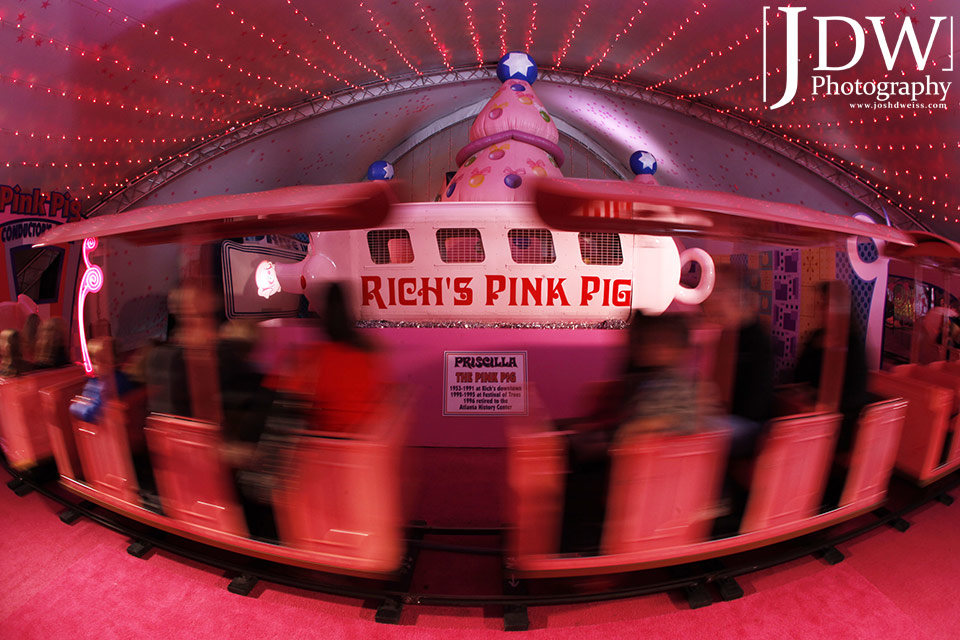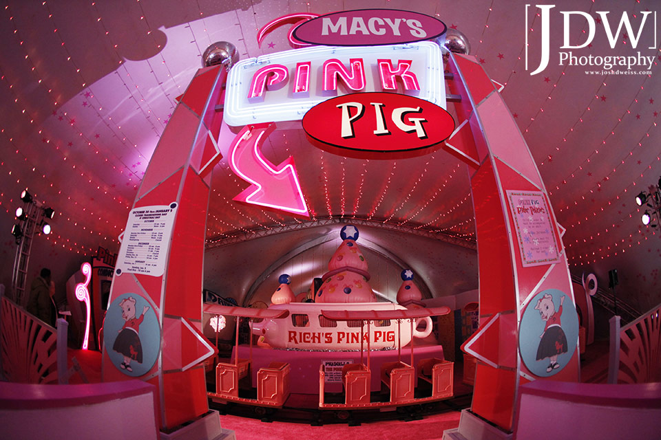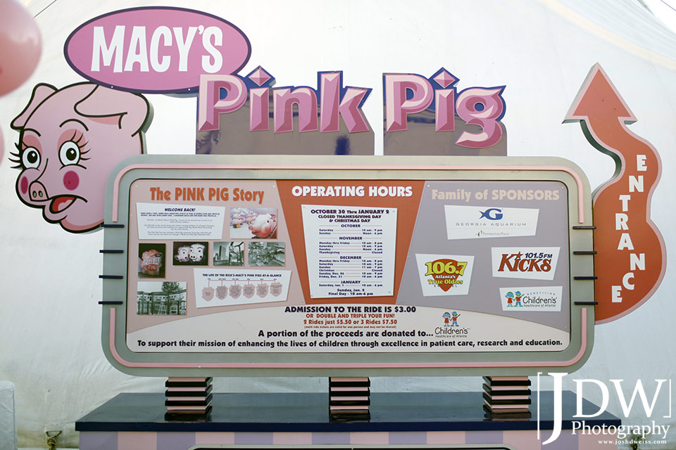 My other assignment for the AJC last Saturday was to shoot the Pink Pig which was opening its doors for the season outside of Lenox Mall. The Pink Pig has a storied history in Atlanta, starting off as a monorail type ride on top of the Rich’s building in Downtown Atlanta before being shut down and eventually located to the Georgia World Congress Center’s Festival of Tree’s event. I then was held on display at the Atlanta History Center before being relocated to a tent outside of Lenox Mall as a train.