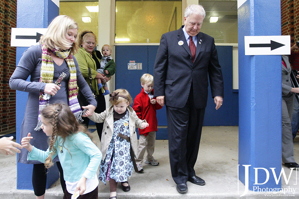 Last week I shot an election day assignment for the Associated Press. They had me go out and cover former Governor and Democratic Gubernatorial candidate Roy Barnes as he voted at Marietta Middle School in Cobb County. Like most politicians, he brought his family along to vote which does actually make for more interesting photos. While he was voting, one of his granddaughters asked why her name wasn’t on the ballot and he stopped looked up and laughed to tell us what she’d just said.