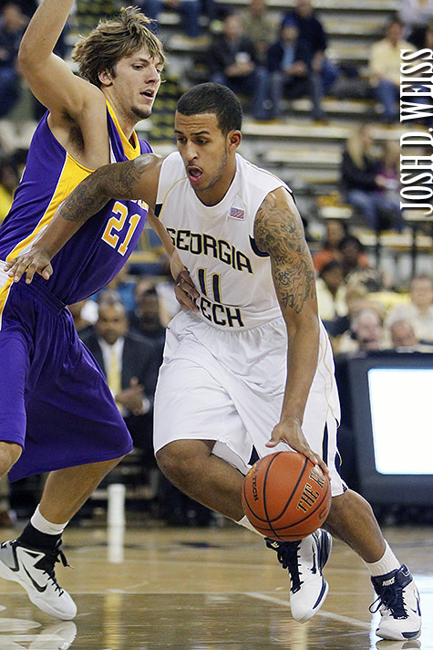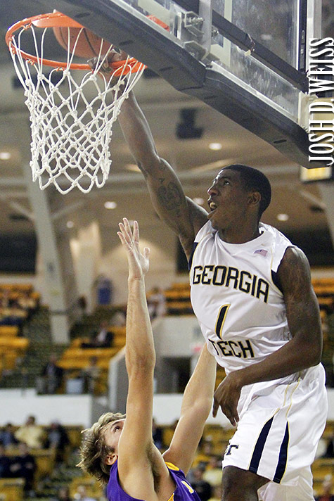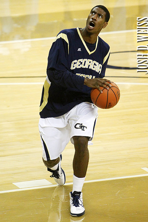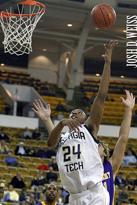 Last week I shot my first Georgia Tech basketball game of the year. I tried some new things to see how they worked/get some experience, and while I wouldn’t call them a complete failure they certainly weren’t a success. Firstly, for my typical floor remote I tried using my 35 mm f/1.4 at f/2 to see if I could clean up the backgrounds some by having a shallower depth of field. The focus was off and the remote wasn’t firing correctly anyway so nix that one this go round. I also tried a backboard camera for the first time. My focus was off on that one too, but the advantage to failing early is that I can learn from my mistakes and fix them for next time. Lots of time to go in the season still so I’m not concerned.