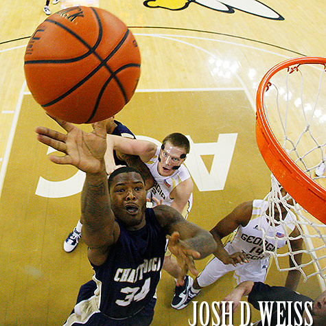 So… I kind of forgot that there was going to be a game tonight.  For whatever reason, it never got added to my calendar and it wasn’t until about 6 hours before the game, when I got an e-mail from US Presswire with my transmit reference number, that I realized I’d have an extra thing on my plate today.  I went over to Tech at this point and put up my backboard remote and hoped for the best.  Instead of the 16-35mm I used last time, I put my fisheye on my 1D mIII.  I think it makes a big difference since the 1D is still a crop body.