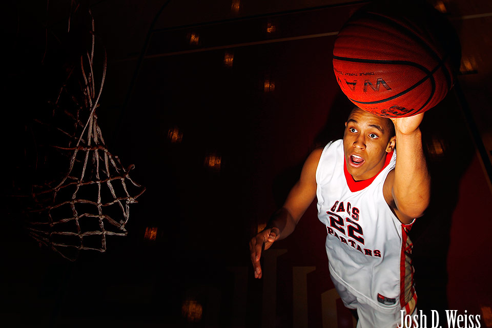 Malcolm was a really nice kid who was really cooperative with my requests. The hard part about the shoot was how terrible the lighting was in GAC’s gym. I’d only shot in their old gym once, back when I still worked for the paper in Gwinnett, but they’d since built a new basketball arena. I was hopeful it would be better, but unfortunately it was only marginally better. I guess anyway you shape it, a high school gym is a high school gym no matter how nice it may be.