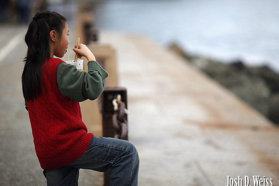 I’m really loving this post.. I’m actually having trouble picking a favorite. I LOVE the photo of the guy looking down at the skyline, assuming that this was taken on Twin Peaks. The photo of the girl with the noodle, the carnival peeps, and the Four Barrel Coffee shot… well done.