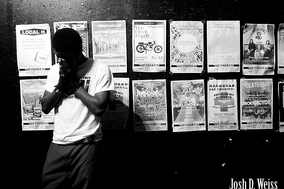 Last night I checked back in with Vandal of Platinum Championship Wrestling, you can see my first shoot with him here. Platinum was having their monthly show at The Masquerade and Vandal had his final best of 7 match with Phantom. If he won, he got a chance to wrestle for the PCW title next month. Lucky for him, he did. I was also surprised because when he showed up for the event, his girlfriend was with him. I was glad I got to meet her because as I move the story into his non-wrestling life I wanted to make sure I got that aspect in there as well.