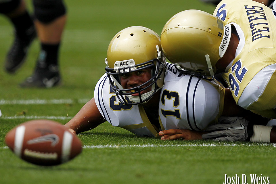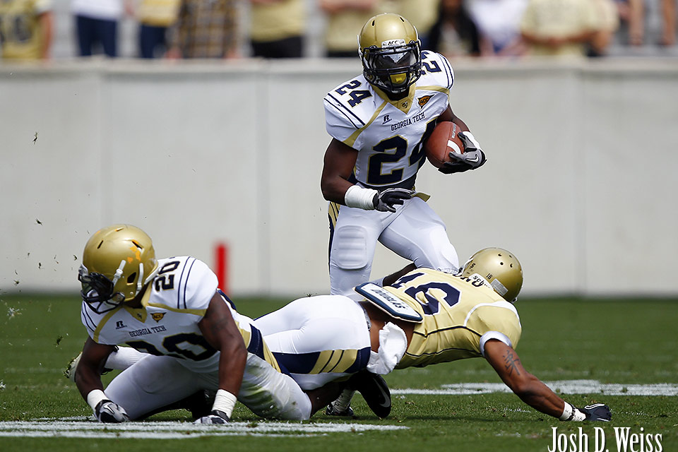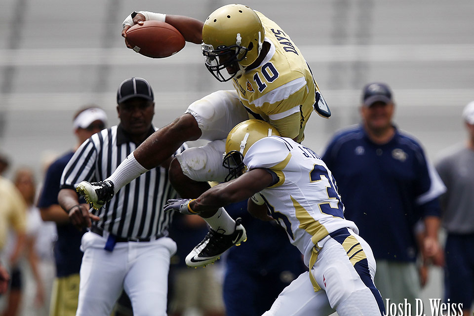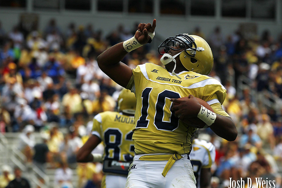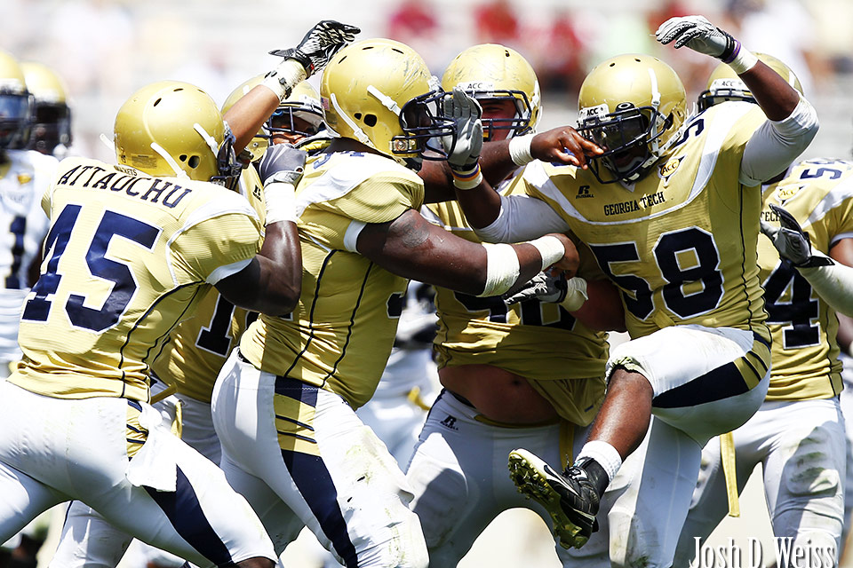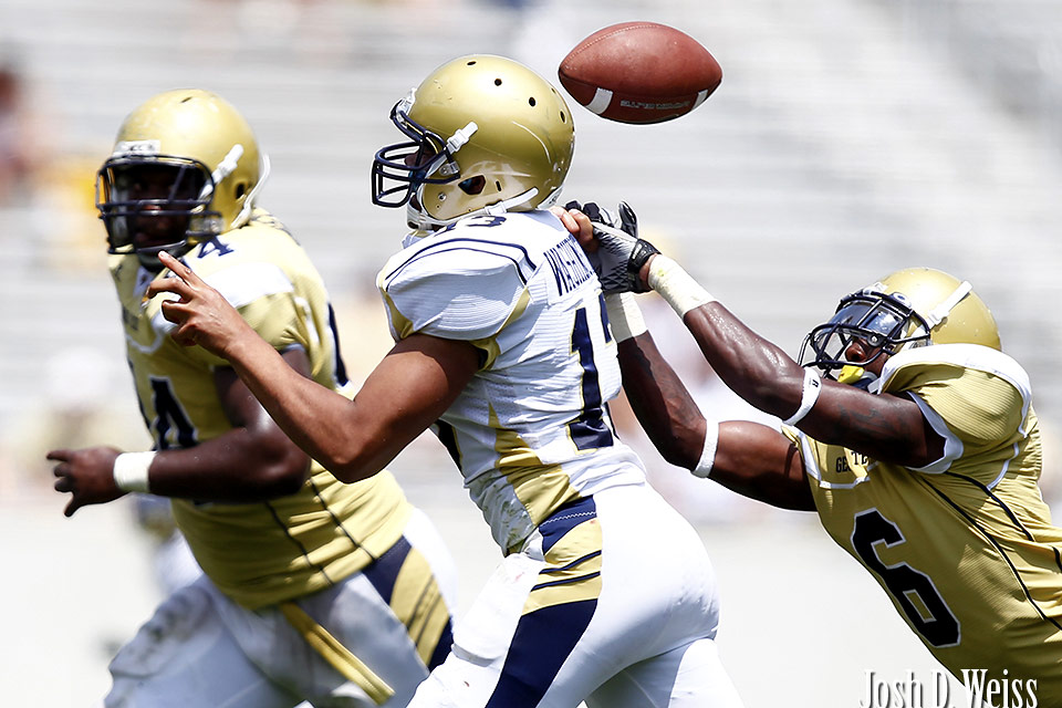 Yesterday was the annual T-Day game at Georgia Tech. The team divides up into the yellow and white teams which pair the first team offense with the second team offense and the first team defense with the second team offense.