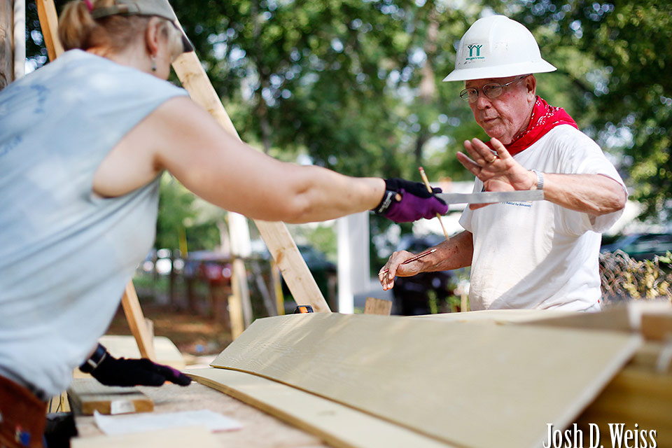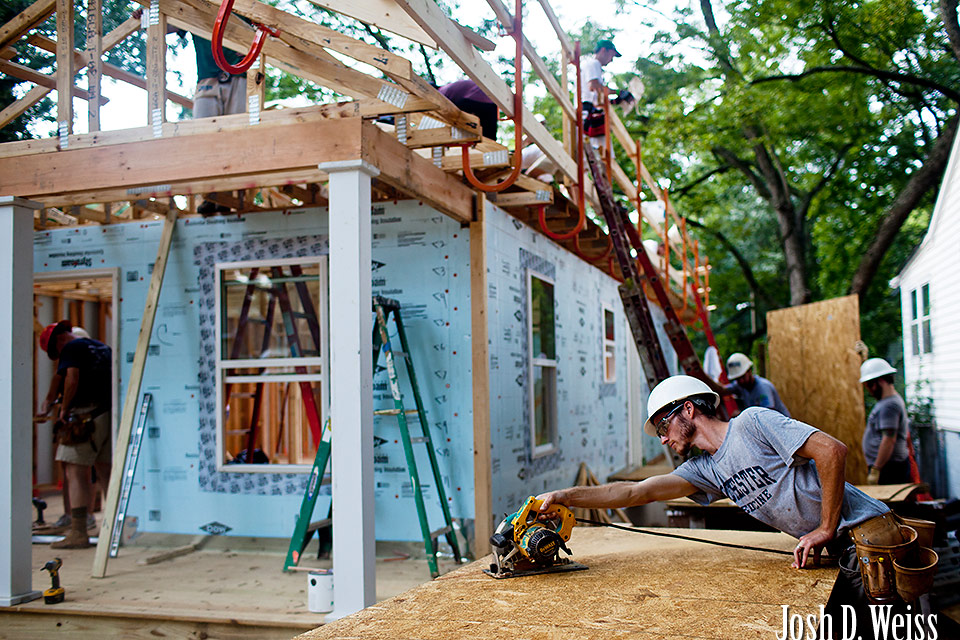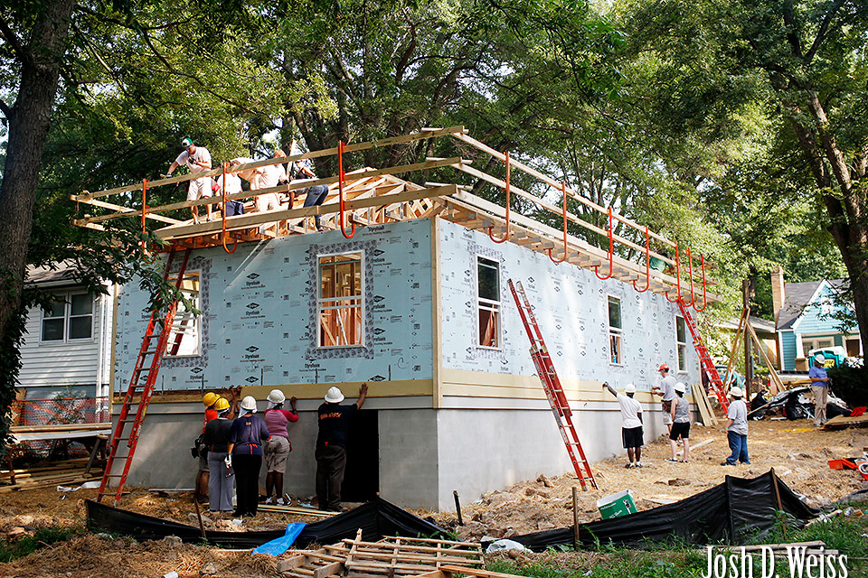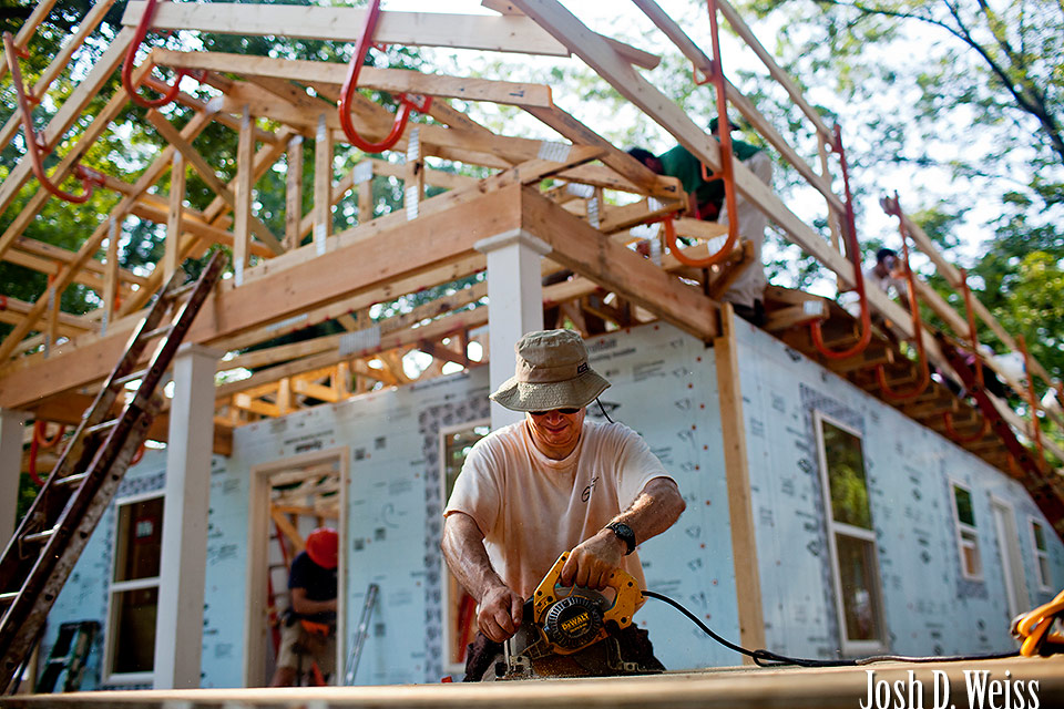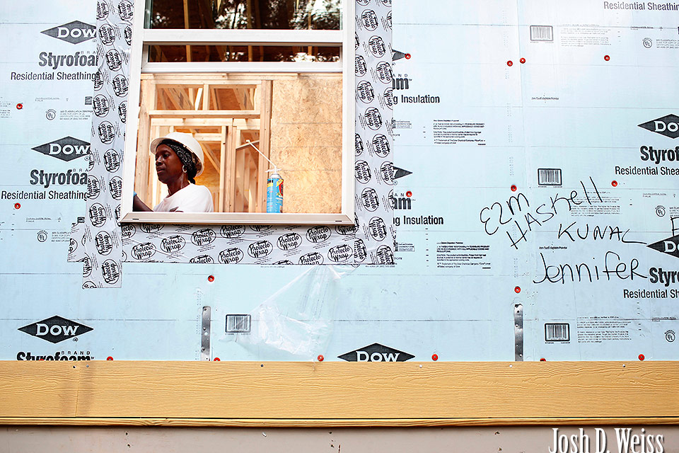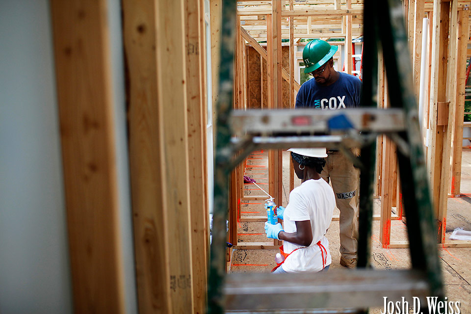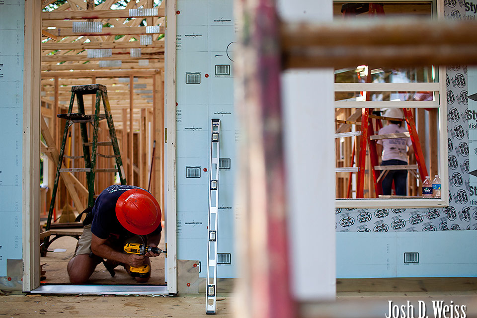 Last Saturday the AJC asked me to shoot a Habitat for Humanity build for a story they were doing about housing development. The shoot went really well, and I was quite happy with how the photos came out. Sometimes the light, backgrounds and environment all just work in your favor. This was one of those times. I tried to use the framing of the house to frame the workers and provide layering in my compositions. I also used a shallow depth of field to blur out the backgrounds enough so that they wouldn’t compete for the viewers attention.