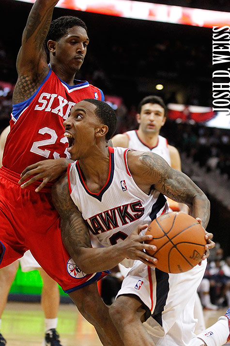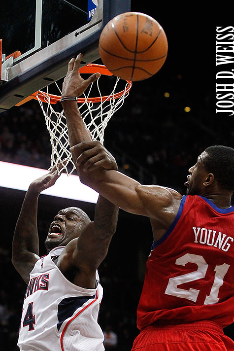 From the Philadelphia 76ers vs. Atlanta Hawks basketball game on February 04, 2012 at Philips Arena in Atlanta.