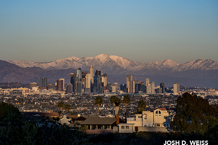 At the beginning of January there was a snowfall up in the mountains near Los Angeles. I headed out to Kenneth Hahn State Recreation Center to get some photos of the skyline with the snow caps in the background. I probably should have brought a heavier jacket.